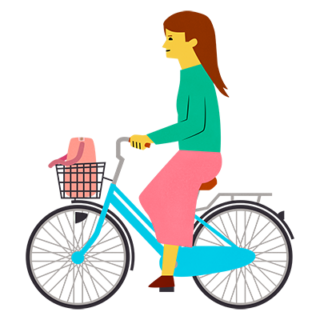 自転車のカゴにバッグを入れている人
